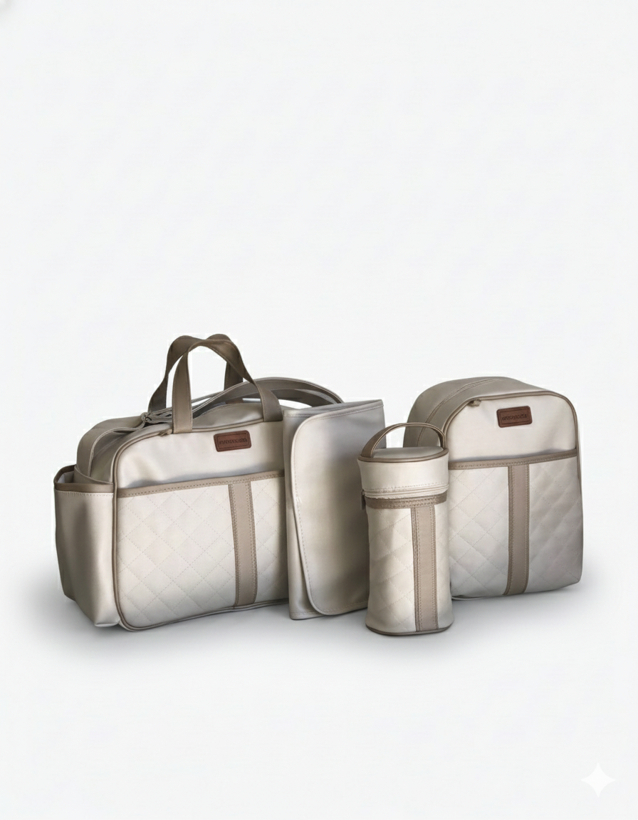 Cada item do kit foi cuidadosamente desenvolvido para proporcionar qualidade e conforto. A bolsa Prom-3/M é espaçosa, contendo compartimentos internos e externos que garantem fácil acesso aos seus objetos. A mochila Prom-3 é a escolha ideal para quem busca praticidade em transporte, além de ser compacta e estilosa. O porta mamadeiras P mantém os alimentos ou bebidas bem conservados, enquanto o trocador SG/P oferece segurança e higiene na hora do cuidado com seu bebê. Tudo isso combinado em um design moderno e sofisticado, com acabamentos resistentes que garantem durabilidade.